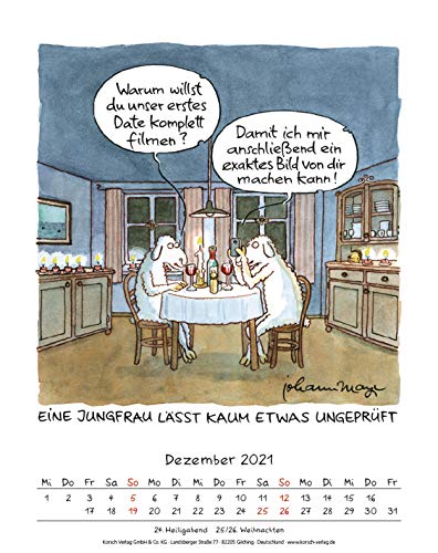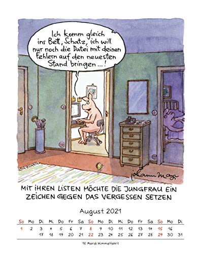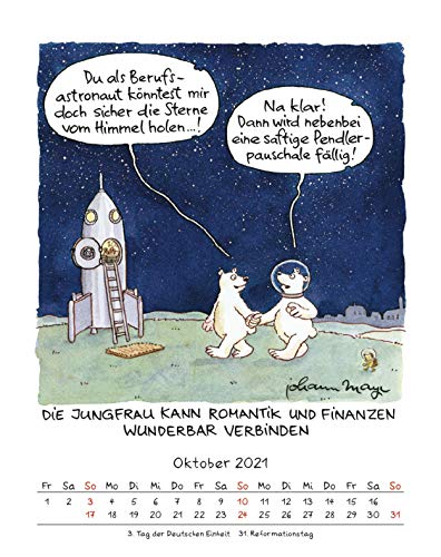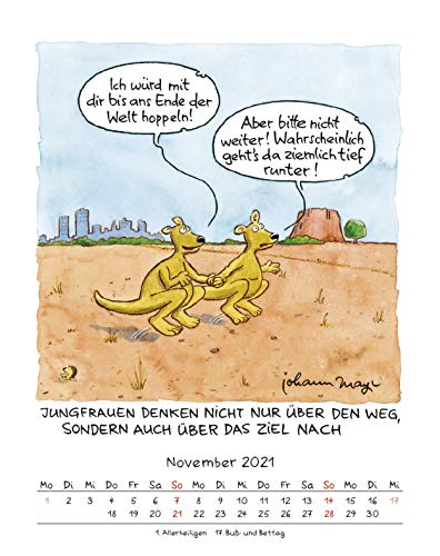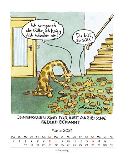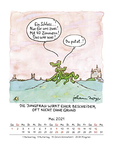 Jungfrau 2021: Sternzeichenkalender-Cartoonkalender als Wandkalender im Format 19 x 24 cm.