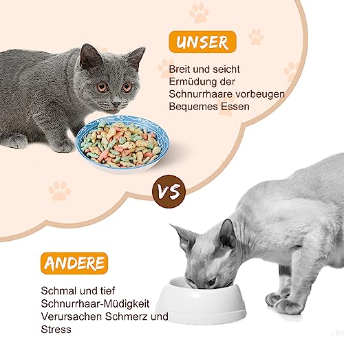 Keramik-Katzenfutternapf-Set – breiter, flacher Katzennapf zur Linderung von Schnurrhaare – niedliche Futternäpfe für Katzen – flacher Katzennapf – Katzenteller – mikrowellen- und spülmaschinenfest –
