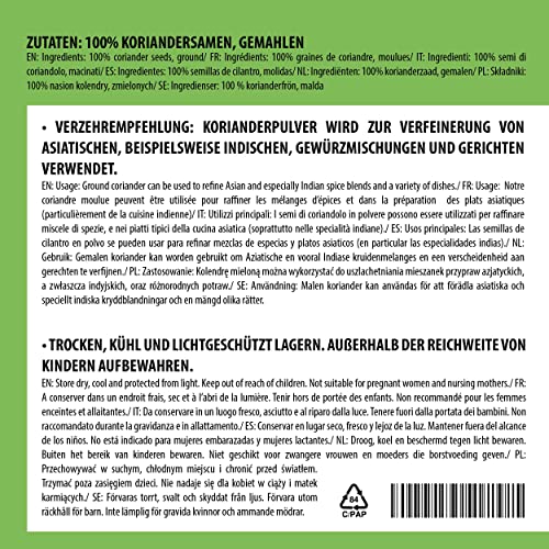 🧡 100% NATURREIN: Unser gemahlener Koriander enthält keinerlei Zusatzstoffe, Geschmacksverstärker oder künstliche Aromen und ist vegan.