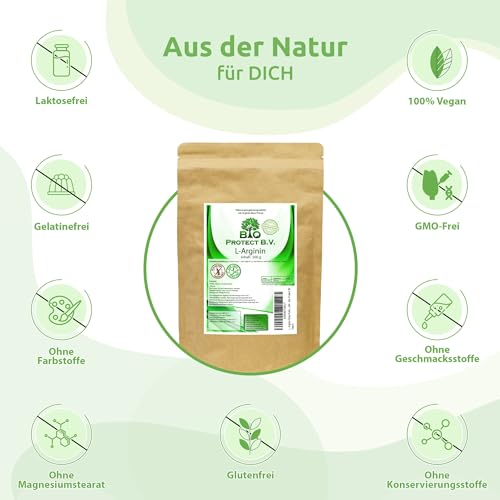 L-Arginin Lauge ohne Zusatzstoffe in Premiumqualität von Bio Protect –> OHNE Magnseiumstearat und andere nutzlose Zusatzstoffe