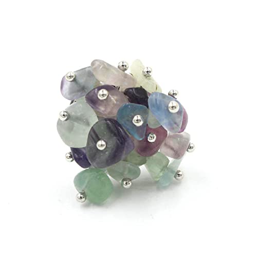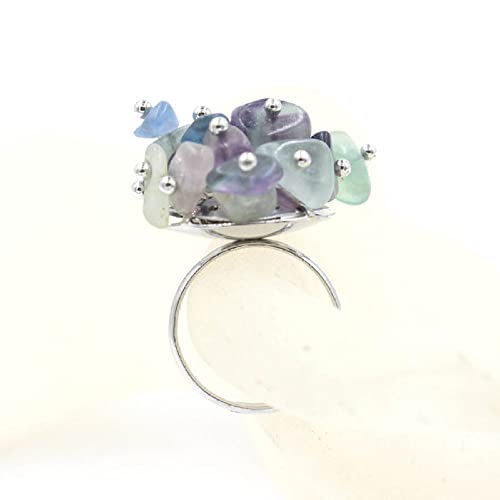 LCDIUDIU Ringe Frauen, Silber Natürlicher Unregelmäßiger Kies Grüner Fluorit Stein Blumenstrauß Persönlichkeit Verstellbar Offener Knöchel Schwanz Ring Fingergelenk Ring Schmuck Geschenk Für Frauen