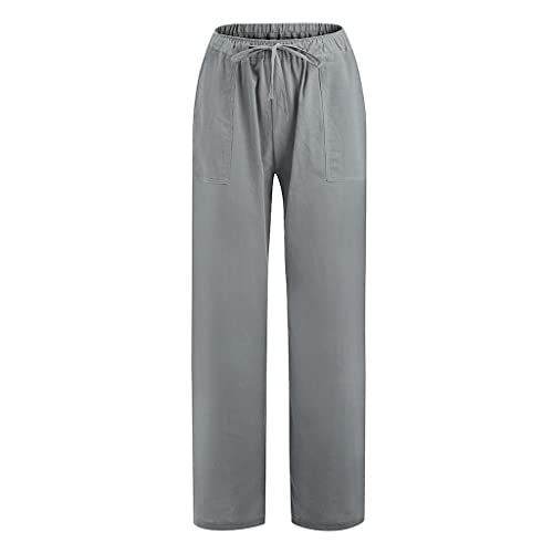 Leinenhose Damen Sporthosen, Baumwollhose Haremshosen Bund Chino Leinen Freizeithose Einfarbig Causal Stoffhose Langehose Damen Lose Lässig Jerseyhose Weites Bein Lounge Hose Atmungsaktiv Yogahose