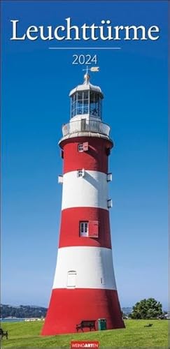 Leuchttürme Kalender 2024. Langer Bild-Kalender mit 12 spektakulären Fotos. Wandkalender XL 2024. Vertikaler Kalender mit atemberaubenden Leuchtturm-Fotografien. 33×68 cm.