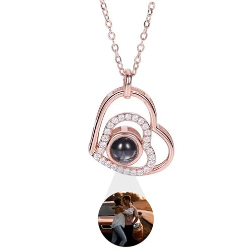 lorajewel Personalisierte Kette Fotoprojektion mit Bild Herzkette Edelstahl Kette Geschenk für Mutter und Tochter Oma Frau Feste Freundin