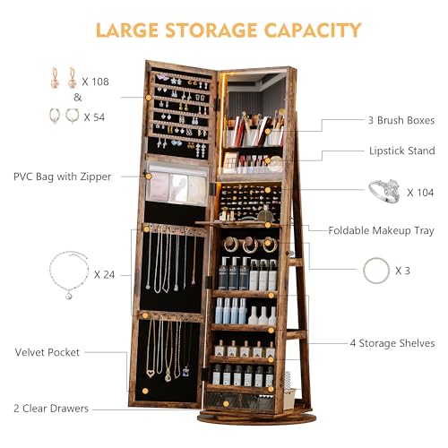【360-Grad-Drehung】: Die 360-Grad-Drehung des Schmuckspiegelschranks ist reibungslos und auf der Rückseite befinden sich 3 Ebenen Stauraum, sodass Sie leicht finden, was Sie suchen. Der Schmuckspiegelschrank ist mit einem Schloss und zwei Schlüsseln ausgestattet, um sicherzustellen, dass Ihre Wertsachen nicht von anderen durcheinander gebracht werden, was für mehr Komfort und Komfort in Ihrem Leben sorgt