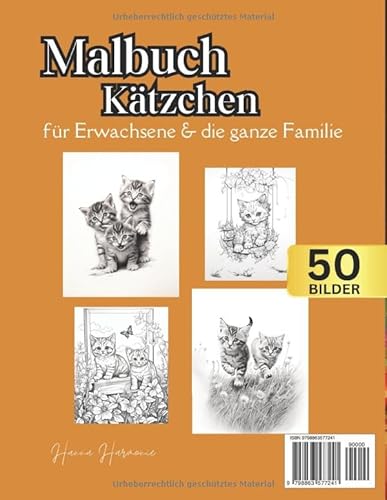 Malbuch Kätzchen: für Erwachsene & die ganze Familie: 50 süsse Katzenmotive zum Stressabbau und zur Entspannung