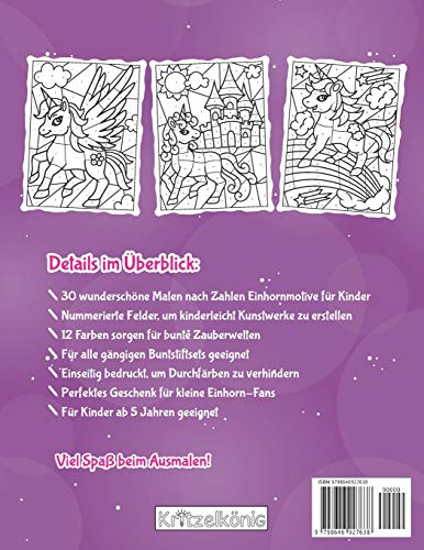 Malen nach Zahlen – Einhorn Malbuch: Magische Einhörner zum Ausmalen für Kinder ab 5 Jahren