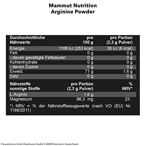 Mammut L-Arginine Powder, 1,6g pro Portion, mit Magnesium optimiert, 1er Pack (1 x 300 g Dose)