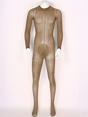 Manyakai Sexy Bodysuit Transparent Nylon Bodystocking Herren Ganzkörperanzug Ouvert Langarm Glatt Shirt Unterhemd Glossy Strumpfhose Mit Pennishülle Erotik