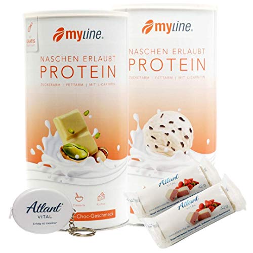 Myline Eiweiß Shake Proteinpulver 2er Pack 2x 400g + AV Maßband + 2 Proteinriegel (Pistazie-Stracciatella)