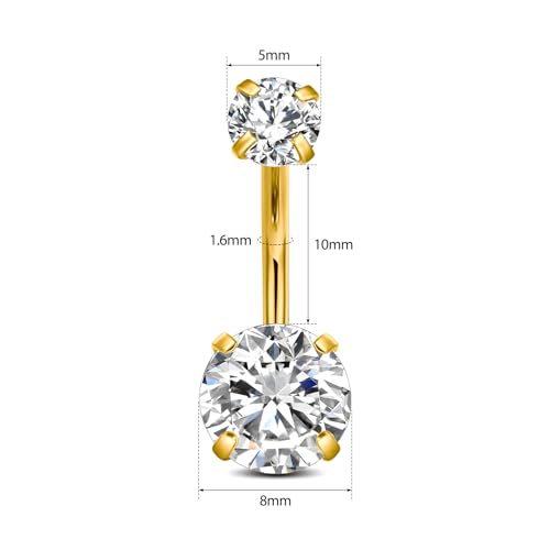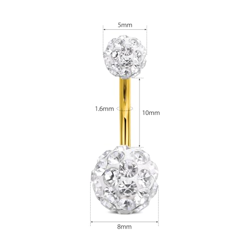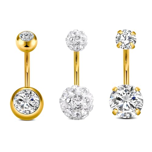 NIUSIMAN 14G Bauchnabelpiercing,3 Stück Bauchnabelpiercing Chirurgenstahl Gold Silber Belly Piercing Kleine Kristalle Bauchnabelpiercing Barbell Set Stablänge Piercing Bauchnabel Schmuck für Frauen