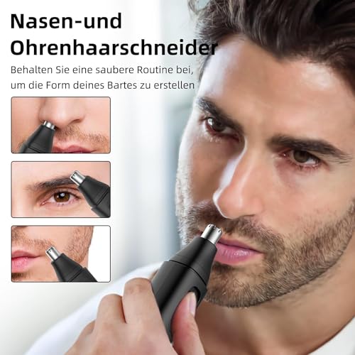 Elektrischer Nasen-/Ohrenhaartrimmer: Unser Nasenhaartrimmer via doppelschneidigen Klingen, doppelschneidigem Spinnklingensystem via Schutzabdeckung, entfernt überschüssige Haare von Nase und Ohren und verleiht Ihnen einen gepflegten und stilvollen Bartlook.