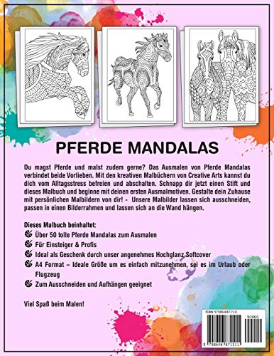 Pferde Malbuch: Das große Malbuch für Erwachsene, Mädchen und Pferdeliebhaber! – Ausmalen und Entspannen – A4 Malblock einseitig bedruckt von Creative Arts Malbücher!