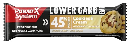 Power System Lower Carb Bar Cookies & Cream 45% Eiweiß Protein-Riegel Low Sugar, Low Carb, 28x40g