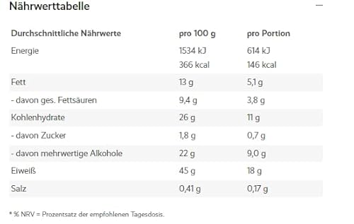 ✅ HOCHWERTIGES PROTEIN: Mit Milcheiweiss und Vollmilchpulver als Hauptprotein-Quellen enthält der Riegel 45% hochwertiges Protein und ist handkehrum lecker weich und abgerundet..