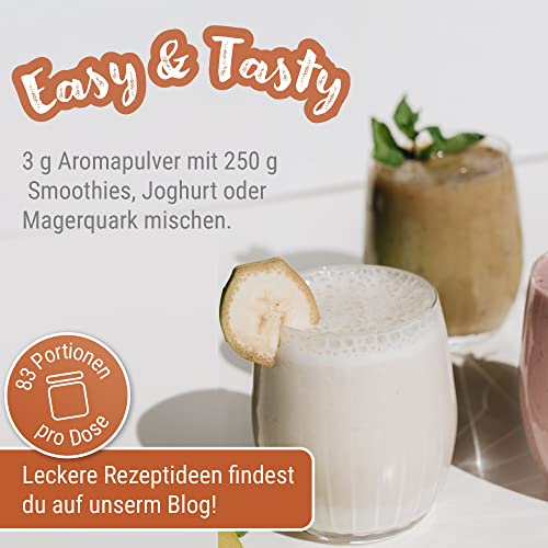 ✔ NATÜRLICH LECKER: Das Aroma-Pulver ist vegan, gluten- und laktosefrei und deshalb perfekt mit vielen Ernährungsweisen vereinbar. Das Geschmackspulver kommt ohne Aspartam, künstliche Farbstoffe und raffinierten Zucker aus. Für ein köstliches Geschmackserlebnis ohne Kompromisse!