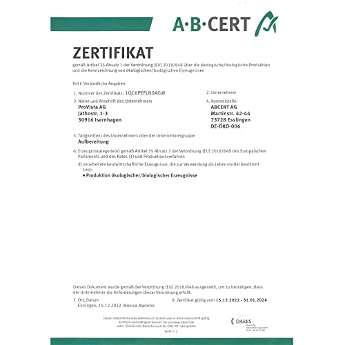 💚 Offizielles Bio Siegel:Bio und Nachhaltigkeit Wir sind bemüht, unsere Produkte so nachhaltig wie möglich zu produzieren. Die Verpackung ist recycelbar und der optimale Kompromiss zwischen nachhaltiger Müllvermeidung und Lebensmittelqualität und – sicherheit.