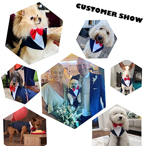 PUMYPOREITY Hund Smoking Anzug und Bandana Set Welpe Kostume Mantel Formale Hochzeit Party Kleidung Hochzeit Fliege Krawatte Hemd Verstellbar Schwarz