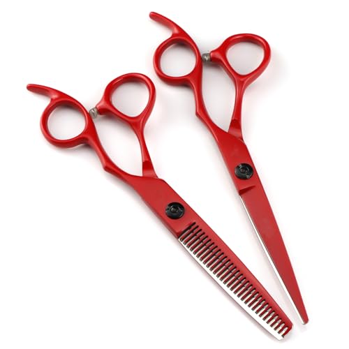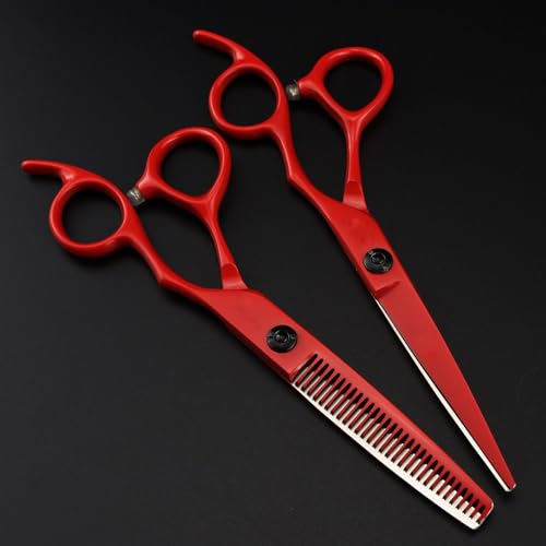 PuPLuM 6,0 Zoll rot personalisierte Friseurschere Haarschere, Flachschere Zahnschere Effilierschere