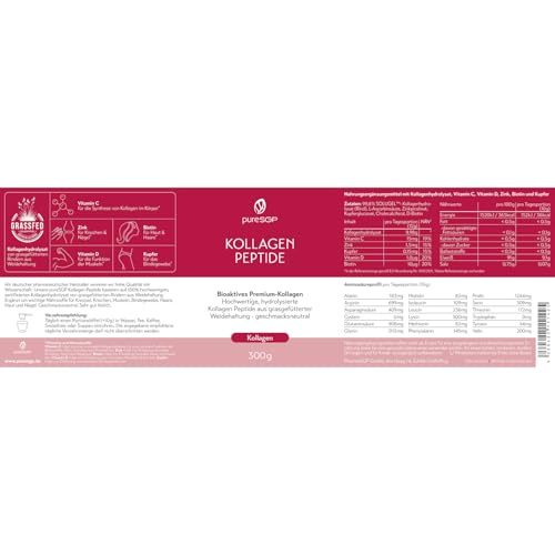 pureSGP® Kollagen [300g]: Reinstes Kollagen in Apothekenqualität – Bioaktive Premium-Peptide aus hochwertigem Kollagenhydrolysat. Mit Vitamin C & Biotin – Geschmacksneutral – Gute Löslichkeit