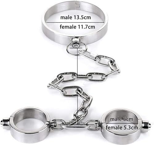 Qodpxxi Übergewicht Metall Extrem Bondage-Set für männliche oder weibliche Sklaven, Handschellen, SM-Spiel für Paare, Handgelenksmanschetten aus Metall und ein Sexhalsband-Bondage-Set