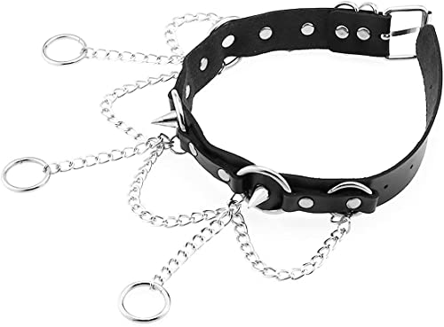RatsCh Choker-Halskette Punk Metall Ring Kragen PU Leder Nieten Halsband Gothic Kette Halskette Verstellbare Schnalle Hals Zubehör