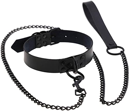 RatsCh Choker-Halskette Punk-O-Form-Kragen-Zugketten-Halsband PU-Leder-Kragen-Umhängeband Gothic-Nachtclub-Goth-Gürtel-Hals-Zubehör verstellbar, abnehmbar