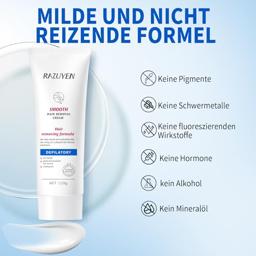 RAZUYEN Schmerzfreie Enthaarungscreme für Körper & Beine, Ultraschnell, Sicher und Sanft Haarentfernungscreme, empfindliche Haut Haarentfernung Creme für Frauen, 120 ml