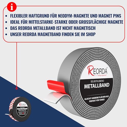 VIELSEITIG NUTZBAR – Unser einzigartiges Reorda Ferroband lässt sich dank seines hohen Metallanteils hervorragend Statt Tonie Figuren, selbstgebaute Tonie Regale & min. mittelstarke Magnete verwenden.