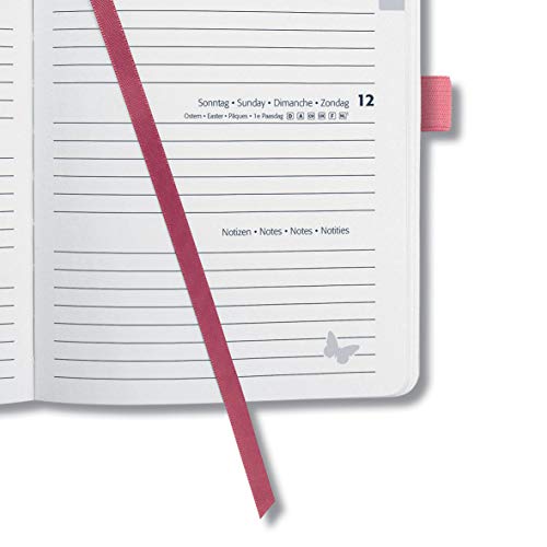 Magentafarbener Wochenkalender, Laufzeit Januar – Dezember 2020, Hardcover mit raffinierten Ausstanzungen im Format ca. A5 (13,5 x 20,3 cm), 174 Seiten, Wochenübersicht auf einer Doppelseite
