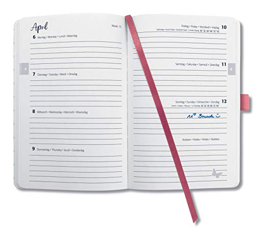 Nützliche Zusatzseiten: Feiertage (für D, A, CH, UK, F, NL), Schulferien, internationale Kleidergrößen, Stunden- und Familienplaner, Platz zum Notieren von Adressen, Geburtstagen und Geschenkideen, u. v. m.