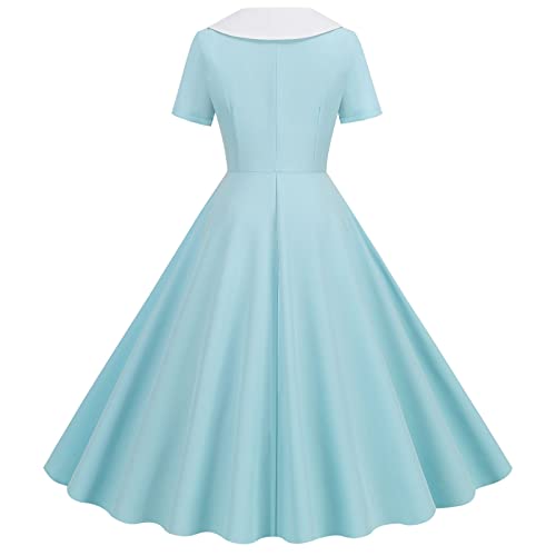 Summer Foreign Trade Explosion Damen V-Ausschnitt, kurzärmlig, einfarbig, Retro, zweireihig, Knopf, Big Swing-Kleid Kleid Gelb Schwarz Damen