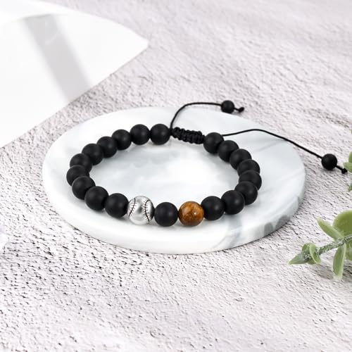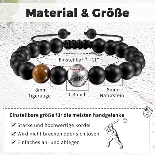 ⚾【Materialien】-Dieses Armband ist aus natürlichem schwarzem Onyx Stein und Tigerauge Stein mit Baseball Dekoration und geflochtenen Seil Verbindung gemacht. Poliert und glatt, angenehm zu tragen, stark und langlebig. Sicheres Material, wird Ihren Körper nicht unangenehm machen.