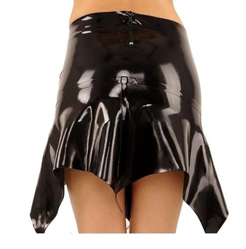 SUPERCH Schwarze, sexy, asymmetrische Mini-Latexröcke mit kurzem Reißverschluss am hinteren Gummiunterteil