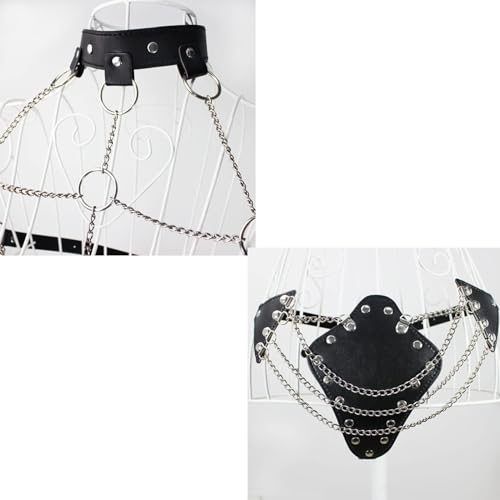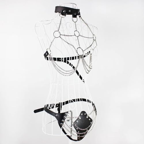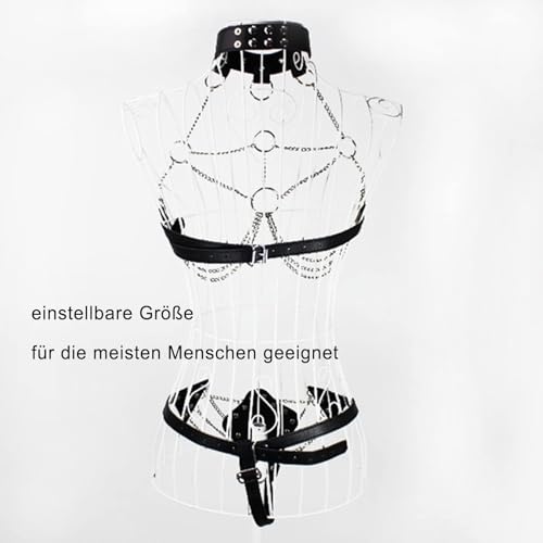 SXZMAZS Damen Harness Geschirre Leder Busenfrei Ouvert Restraint Riemenbody Sexy Unterwäsche Negligee Set mit Kette Verstellbarer Gürtel Metallkette Erwachsene Erotik Flirt Sex Spielzeug Rave Outfit