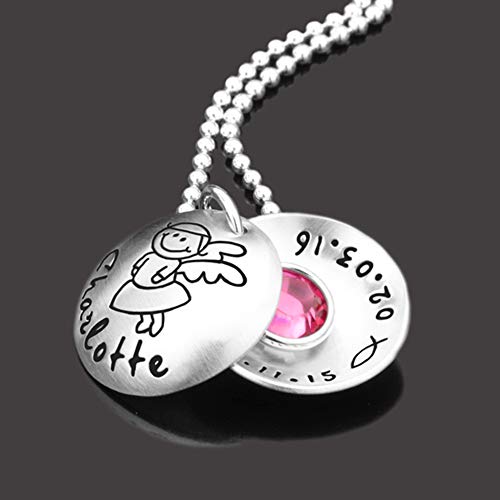 samavaya Taufkette Mädchen Gravur Engel SCHUTZENGELCHEN 2.0 925 Silberkette Taufschmuck personalisiert Taufgeschenk Taufpate Taufpatin Geburtsstein