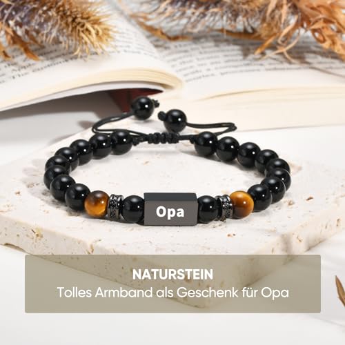 Papa Geschenke für Männer – Das Herrenarmband ist aus 8 mm mattem schwarzem Achat und Tigerauge gefertigt. Jedes Stück wird sorgfältig von Hand gefertigt, um Qualität und Liebe zum Detail zu gewährleisten.