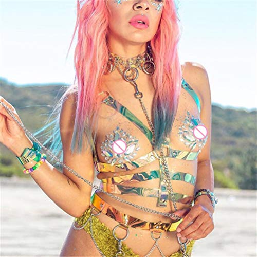 TENDYCOCO Damengürtel für Damen, Performance-Geschirr, 2 Stück, schillernd, Körpergeschirr, Brustgeschirr, Mode, Clubwear, Kostüm für Damen, Punk, Taillengürtel, Damen-BHs, Verschiedene Farben.,