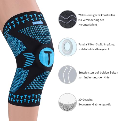 Teylam Kniebandage Männer Damen, Komprimierte Bandage Knie für Meniskus Riss, Arthrose, Sport Kniestütze für Basketball, Laufen, Rutschfeste Kniegelenkbandage für rechte und linke Knie