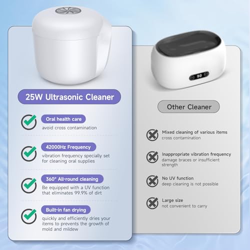 Ultraschallreinigungsgerät Zahnschiene UV für Zahnprothesen, 42kHz Ultraschallreiniger Dental Pod Ultraschall-Reinigungsbox Tragbarer mit Lüftertrocknung für Retainer, Aligner, Mundschutz