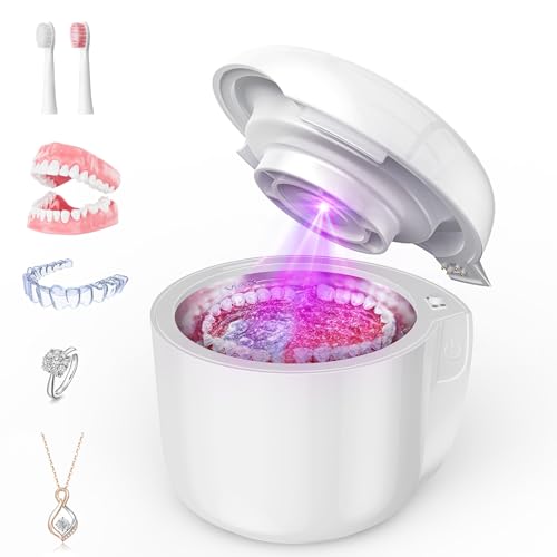 Revolutionieren Sie Ihre Mundhygiene-Routine: Dieser tragbare Ultraschall-Zahnersatzreiniger sorgt nicht nunmehr für eine gründliche Reinigung von Zahnersatz, Zahnspangen und anderen Mundpflegeartikeln, sondern integriert aka UV-LED-Licht und eine Lüftertrocknungsfunktion für optimalen Komfort