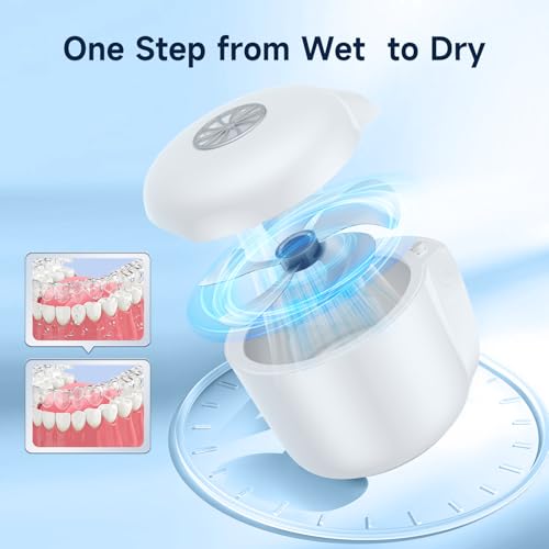 Lüftertrocknung, sofort frisch: Verabschieden Sie sich von herkömmlichen Reinigern. Nasse Zahnprothesen können Bakterien beherbergen und Unbehagen verursachen. Die Lüftertrocknung mit UV-Licht-Abbildung trocknet Ihre Zahnprothesen nach der Reinigung, verhindert das Wachstum unerwünschter Elemente und sorgt dafür, dass sie angenehm und einsatzbereit sind.