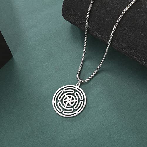 VASSAGO Rad der Hekate Göttin Halskette Strophalos Anhänger Halskette Hekate Symbol Halskette Edelstahl Pagan Wicca Amulett Schmuck