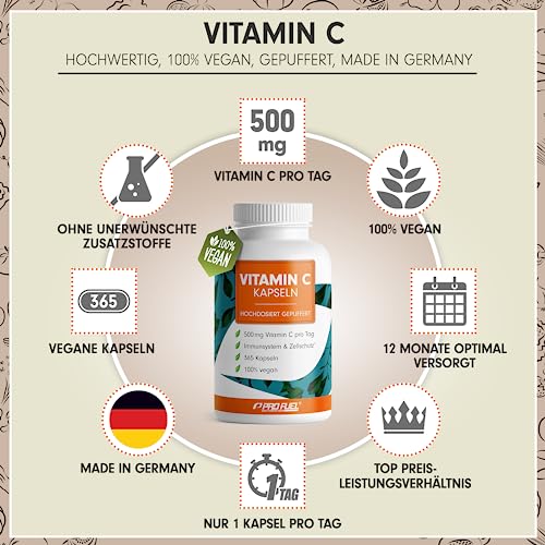 🏆 TOP PREIS-LEISTUNGSVERHÄLTNIS: Eine Dose beinhaltet 365 Kapseln mit je 500 mg hochwertigem Vitamin C. Die VITAMIN C Kapseln sind zur längerfristigen Einnahme konzipiert – bei täglicher Einnahme reichte der
