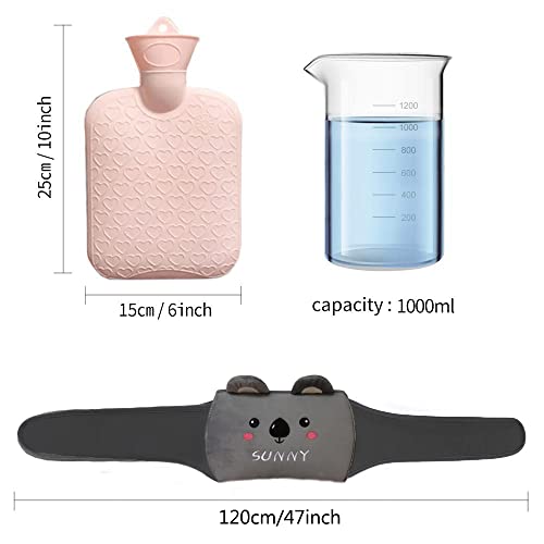 Wärmflasche mit Bezug, 3 in 1 Wärmflaschengürtel mit Wärmflasche, Tragbare Wärmeflasche mit Weichem Taillen-Bezug, Hot Water Bottle für Nacken und Schulter, Rücken, Taillenwärmung, 1L