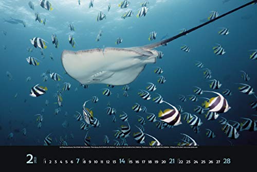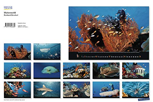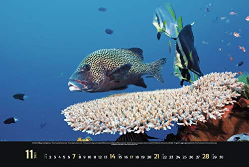 Waterworld 2021: Großer Foto-Wandkalender mit unterwasser-Bildern von Fischen. Edler schwarzer Hintergrund. PhotoArt Panorama Querformat: 58×39 cm.