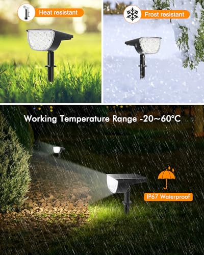 【IP67 Super wasserdicht】 WeBeqer Solarstrahler für den Außenbereich. Hergestellt aus hochwertigem ABS-Material, ist die Solarleuchte robust und langlebig und kann in Umgebungen von -20–60 °C eingesetzt werden. IP67 wasserdicht und mit speziellem Design widersteht es Kälte, Hitze, Regen und anderen extremen Wetterbedingungen.
