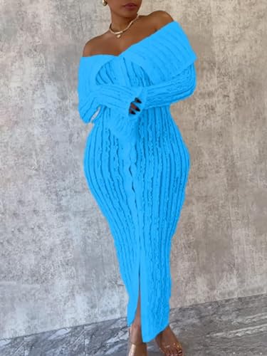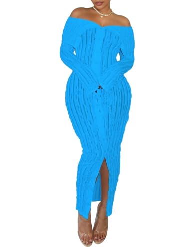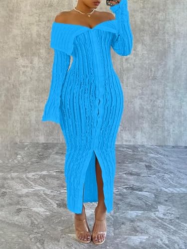 XZLUFNY Schulterfreies Kleid für Damen, langärmelig, figurbetonte Kleider