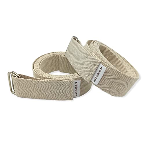 savasanas Yogagurt aus 100% Bio-Baumwolle von hoher Qualität – Dicker und weicher Yogagurt zum Dehnen – Yogagurt mit doppelter Metallschließe [250 x 4 cm] im 2er Pack – Handgemacht in Barcelona
