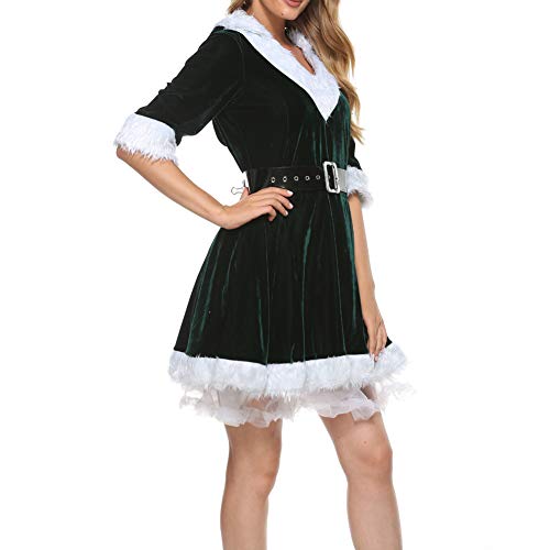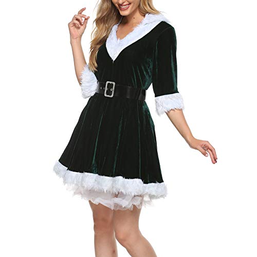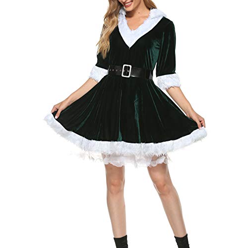 Yoisdtxc Damen Mrs. Claus Kostüm Weihnachtsmann Kleid Cosplay Weihnachten Plüsch Pelz Verkleidung Schulterfrei A-Linie Party Swing Kleid